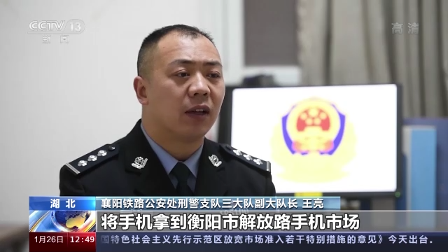 襄阳铁路公安处刑警支队三大队副大队长 王亮:嫌疑人得手后,很快离开了现场,从衡阳站下车出站,并在当天下午将手机拿到衡阳市解放路手机市场,卖给了一个摆摊收手机的人。