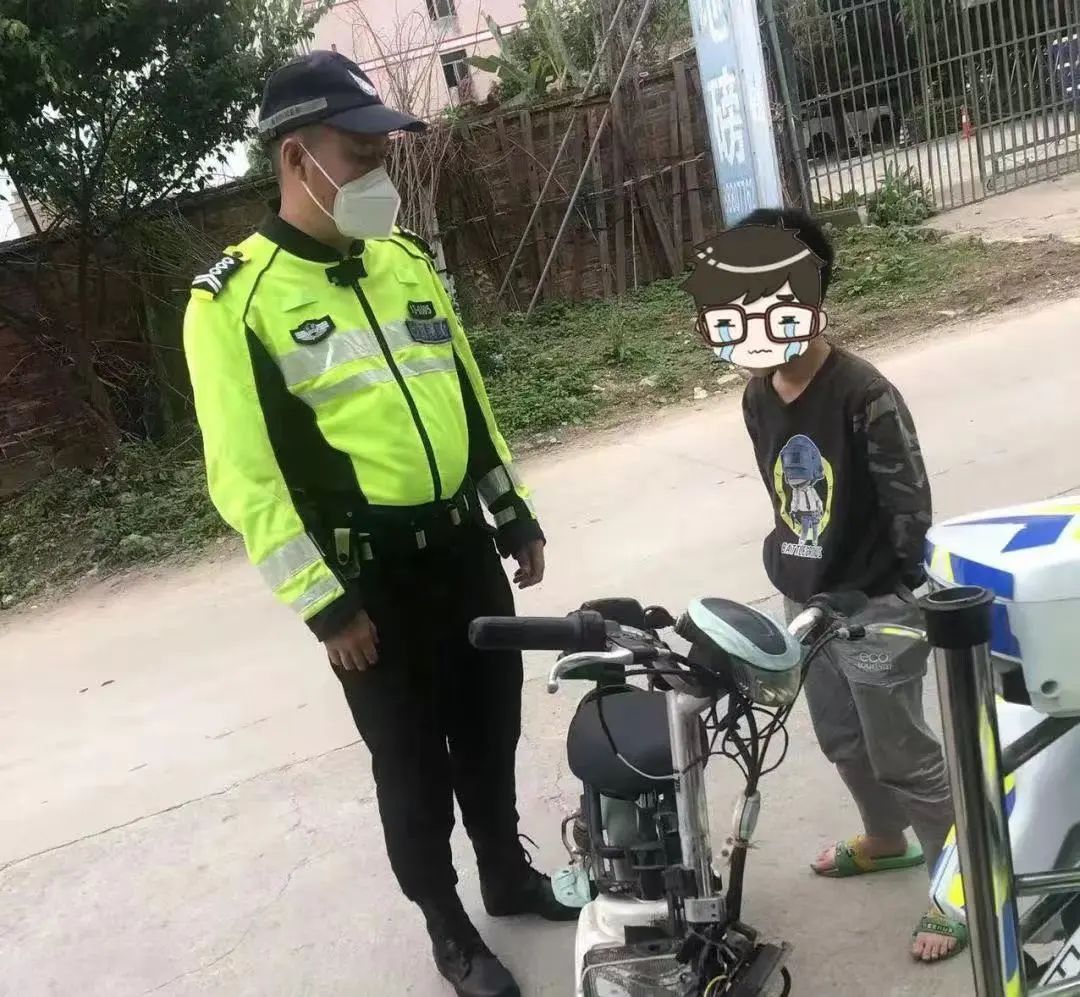 铁骑仔细询问,发现小男孩今年才10岁,趁家长午睡后,偷拿钥匙驾驶电动车出来兜风,想去找同学玩耍,丝毫没有意识到这是一件多么危险的 事。