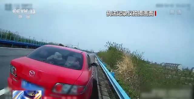 近日,湖北宜昌高速交警在沪渝高速枝江段巡逻时,发现一辆红色小车违法停靠在应急车道内。