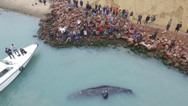 搁浅抹香鲸身上布满渔网线 解剖遗体发现胎儿