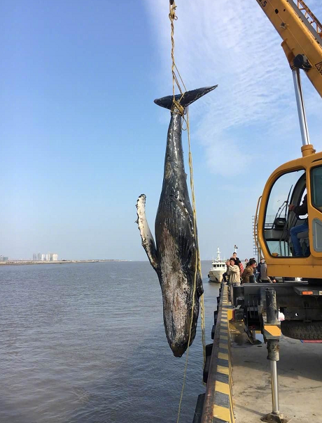 2017年,江苏启东沿海一头搁浅三次的座头鲸死亡,专家初步判断是因慢性疾病导致它的导航系统失灵。而第一次被救后重回深水海域时,它已经无法保持平衡,可见搁浅时引起的内伤不小。