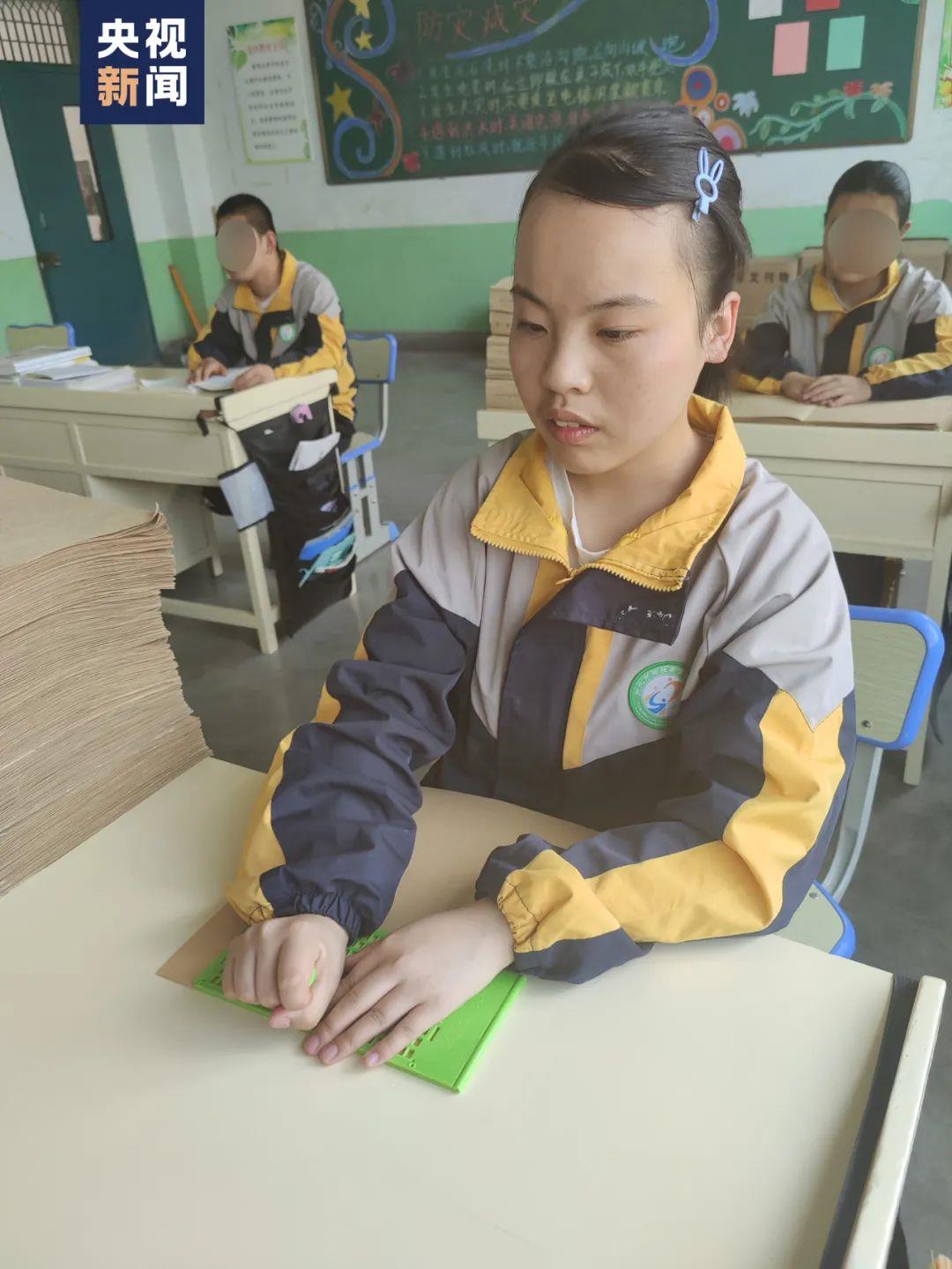 △ 张慧玉用盲文笔在盲文板上扎出盲文点位,即“写盲文”。