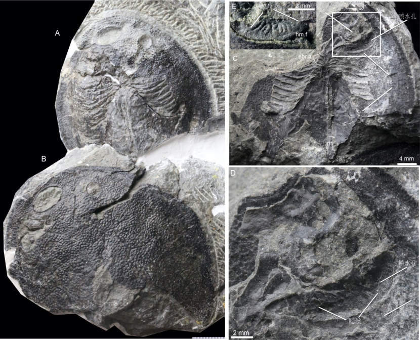 “近20年来,我们的研究团队先后在浙江长兴、云南曲靖分别找到4亿多年的曙鱼和第一鳃囊中完整保存鳃丝印痕的宽甲鱼化石,为脊椎动物喷水孔起源于鱼鳃提供了确切的解剖和化石证据。”盖志琨说。
