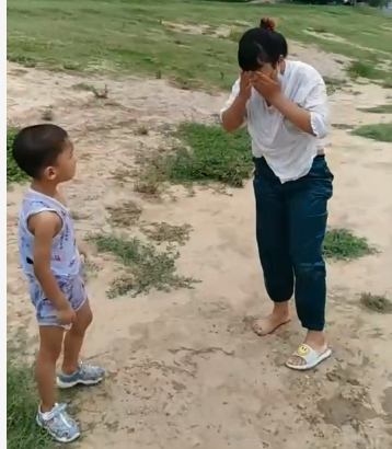 发现有母子两人在河边洗手