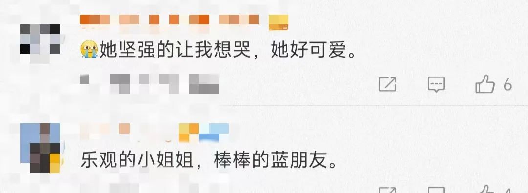 网友纷纷留言表示被暖到了 : 乐观的小姐姐,温柔的“蓝朋友”