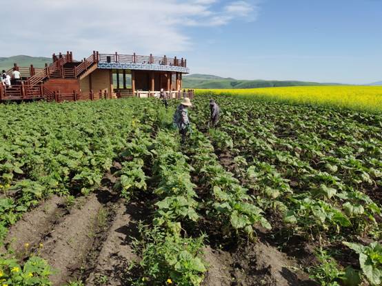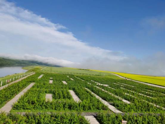 走进庄园,植物迷宫引人入胜,大片大片的花海摇曳生姿,由小麦和油菜构成的太极图气势磅礴……奥洛契庄园景区三面环水,背靠大兴安岭,近年来着力发展集农业、文化、旅游于一体的田园综合体项目,在1.95万亩的土地上,打造体现田园风光、景观农业的大地艺术。其中,太极图腾特色种植基地中以油菜与小麦构成的1989亩大地艺术农业景观,经过英国世界纪录认证机构(WRCA)官方权威认证为世界面积最大的太极为主体的田园景观,也是从卫星上可以看到的唯一太极图,成为游客必去打卡景观。