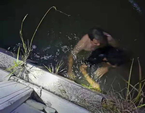 到达河边时,发现有围观群众在岸边急得直跺脚,河水里有人已经溺水下沉,河面上不停冒出气泡,情况万分危急!