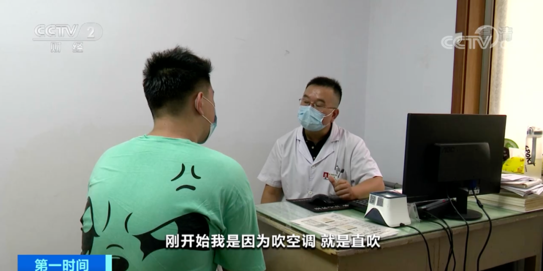 患者 小李: 吹空调就是直吹,第2天早上起来,喝水嘴漏水,刚开始面部也不受控制,眨眼也很困难。