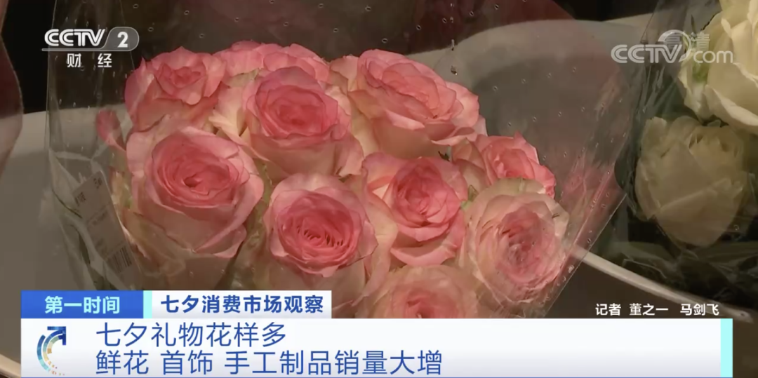 北京某鲜花超市负责人 李丹 :绣球花的种类和颜色更加丰富,销量大概比去年增长了7到8倍 ,七夕礼品花从前天开始售卖,现在来看,销量有2到3倍的增长。