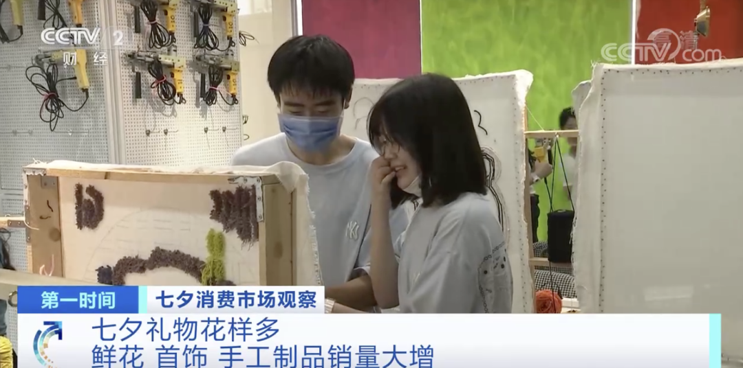 七夕前夕,一对情侣来到了位于北京朝阳区三里屯的一家手工礼品屋,他们告诉记者,今年制作纯手工的礼物在朋友圈里特别流行, 所以他们来这里,想一起制作一条挂毯和一个小熊摆件,作为七夕礼物送给对方。