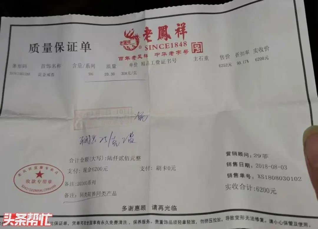 当天,邱女士与公婆经过清点,发现丢失的除了黄金貔貅珠外,还有奶奶的一对耳环、两个戒指,以及爷爷的一个戒指、一条手链,“一共六样东西,总价值有2万多元。”邱女士出示了孩子爷爷的首饰购买记录,记者注意到,爷爷的足金戒指重量为20.30克,价格6200元;足金手链重量为36.69克,价格15409.8元。