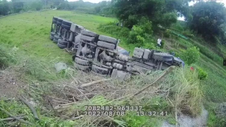 8月8日下午,在钦州市钦北区国道210线3456公里处大直镇往防城港路段,发生一起罐式货车(空车)侧翻到路外田野中的道路交通事故。