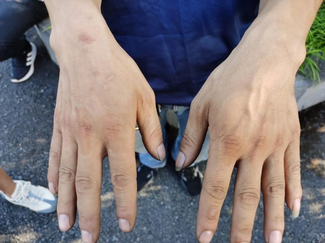 即使每次都戴着手套,锋利的零件和凹凸不平的井道还是在伍红的双手上留下了大大小小的伤痕,“我们是24小时待命,随时都要出动的,不管刮风下雨。这些伤疤,就是我的战绩。”
