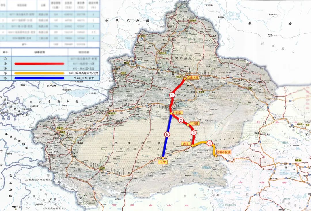 正在建设中的新疆乌尉高速公路路线位于“新丝绸之路经济带”新疆境内核心区域,绵延1305公里的长度跨越南北疆。依若公路项目是新疆乌尉公路包5个子项目中的一个,起点位于新疆与青海两省区交界处的依吞布拉克镇,经巴什库尔干、米兰(36团),北至若羌县城北侧与既有G218线相接。总长约294公里。公路全线采用双向四车道高速公路标准,设计行车时速平原区为120公里、跨山岭区为100公里。