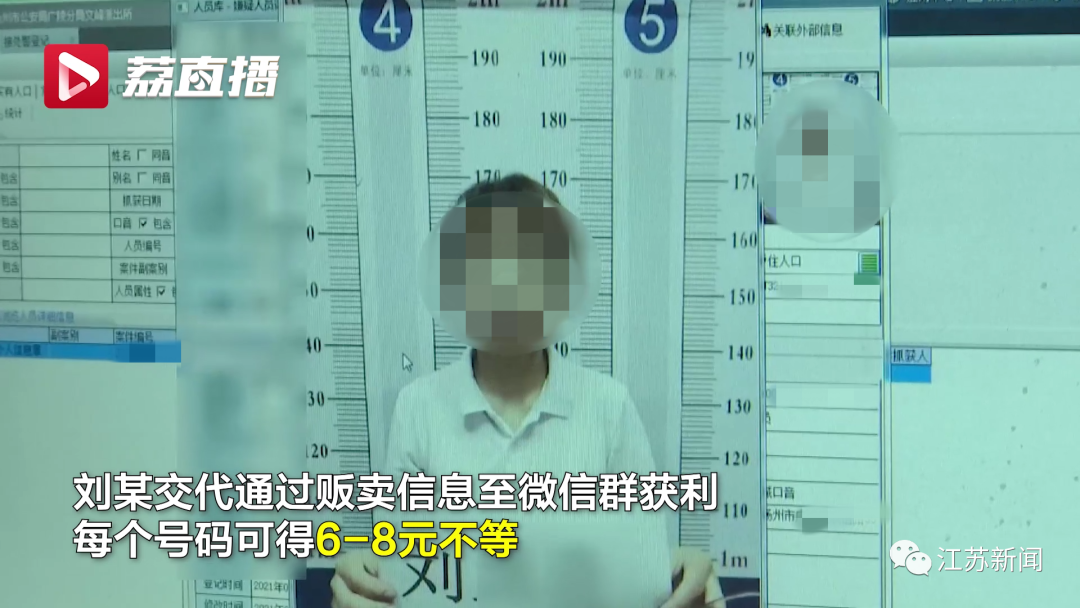 近日,刘某因侵犯公民个人信息罪,被扬州市广陵区人民检察院判处有期徒刑6个月,缓刑1年,处罚金人民币6000元,缓刑期内禁止从事电信服务等行业。