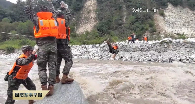 当时的路都已经堵了,河流又非常湍急,所以只有搭建绳索。作为武警特战队员的陈煌第一个通过绳索。随后,小嘉懿在救援人员的帮助下,重新回到了妈妈身边。
