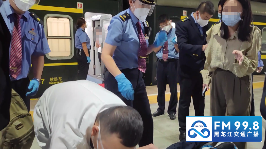 “坚持住!我们都在呢!”王丽不断在旅客耳边呼唤,时间一分一秒的过去,经过近半个小时坚持不懈的努力,这名旅客逐步有所好转。经过了解,这名旅客叫朱宝斌,今年61岁,长期患有胃病、心脏病、低血糖,这次是孤身一人出来准备回哈尔滨探亲,没有同行人员。