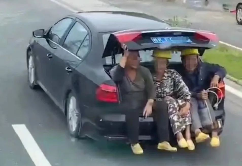 10月1日,一名网友拍下“惊人”一幕,一辆正在行驶的小车敞开后备厢,里面还坐着三个人,仿佛坐敞篷车“兜风”一样自在,完全不顾安全问题。