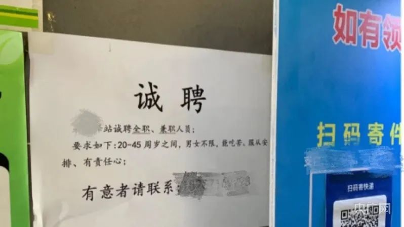 不仅是线下的招募,央广网记者在一些本地招聘平台上也看到不少招募快递员、分拣员、打包员的帖子。