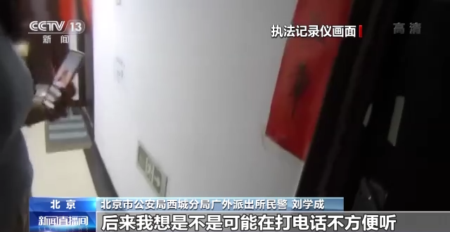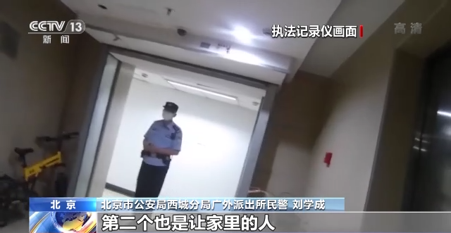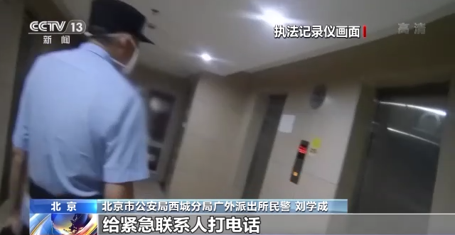 北京市公安局西城分局广外派出所民警 刘学成:敲了半天门没有回音,后来我想是不是可能在打电话不方便听,我就使劲敲了敲,还是没有回音。