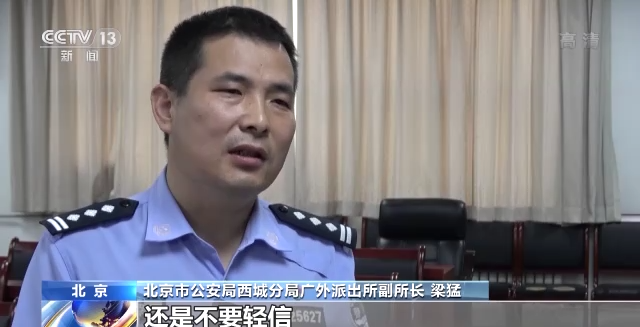 北京市公安局西城分局广外派出所副所长 梁猛:归根结底还是不要轻信,特别是提到钱,只要动钱,基本上百分之八九十都是诈骗,因为公安局如果要动你的钱的话,都是要有法定手续的,不是平白无故打个电话就让你把钱转到哪个账户里边,这是不合法律规定的。