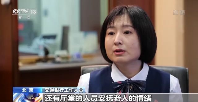 交通银行工作人员:我们临时组织了一个应急的小组,一方面有老人的客户经理,还有厅堂的人员安抚老人的情绪。