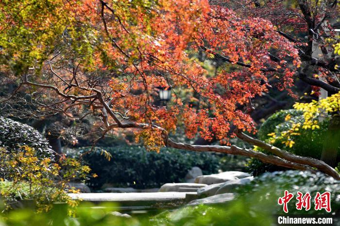 青岛中山公园内红叶缤纷、色彩绚丽。 王海滨 摄