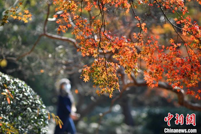 11月17日,初冬时节,青岛中山公园内红叶缤纷、色彩绚丽,红叶、银杏等进入最佳观赏期,吸引众多游客前来打卡拍照,留住最美时光。