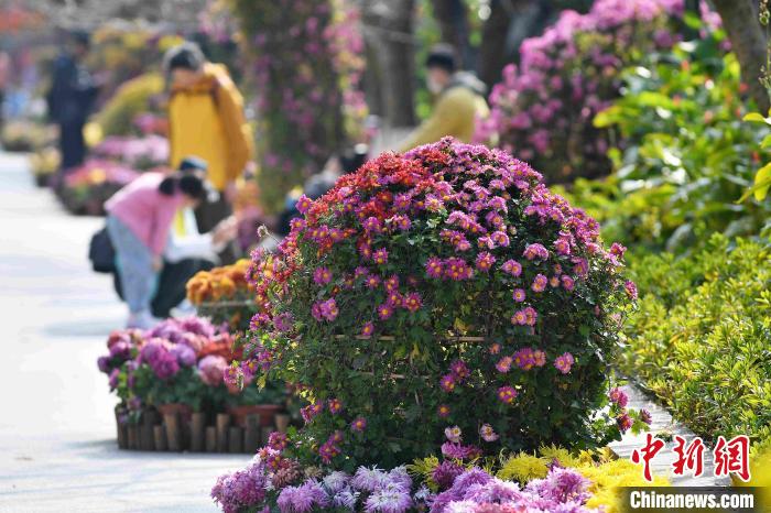 游客在景观道上赏菊。 王海滨 摄