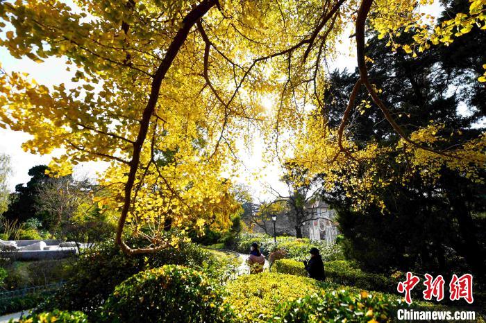 游客在银杏树下赏景游玩。 王海滨 摄