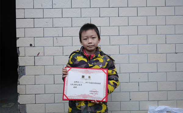 男孩名叫王雨铭,今年8岁,是仙子脚镇沙田中心小学的学生。近日,永州消防一行专程来到王雨铭家中,为他发放“消防志愿者”聘书。