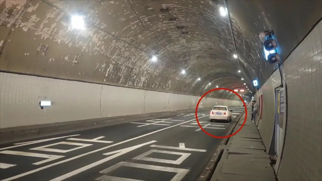 停在了隧道慢车道内