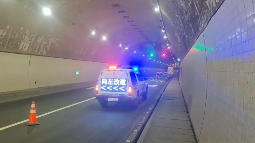 监控员立即通过高速公路智慧警务系统联系驾驶员,让他做到“车靠边、人撤离、即报警 ”,并更改车道指示灯和可变情报板提醒后方来车,同时通知隧道值守人员和就近民警前往处置。