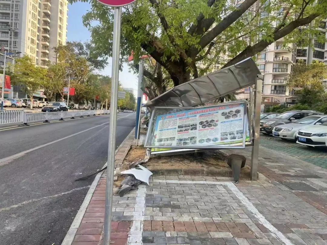 12月26日17时08分许,北海市公安局交警支队第一大队辅警巡逻时,发现在湖南路与茶亭路交叉路口的宣传栏被撞坏,肇事车辆逃逸,一部分汽车零件和汽油撒落在事故现场。巡逻辅警立即向大队指挥中心报告情况。