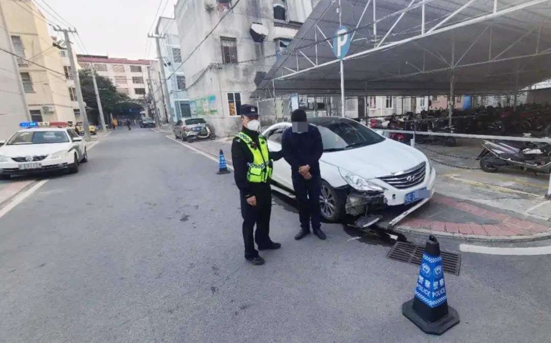 民警调取事发地监控发现,17时01分许,一辆白色的现代轿车在茶亭路由西往东右转进入湖南路时撞倒宣传栏后,逃离现场。民警通过进一步勘查,迅速锁定嫌疑车辆。17时15分许,办案民警在某小区发现嫌疑车辆,但当事人不在现场,民警随即进行走访调查。