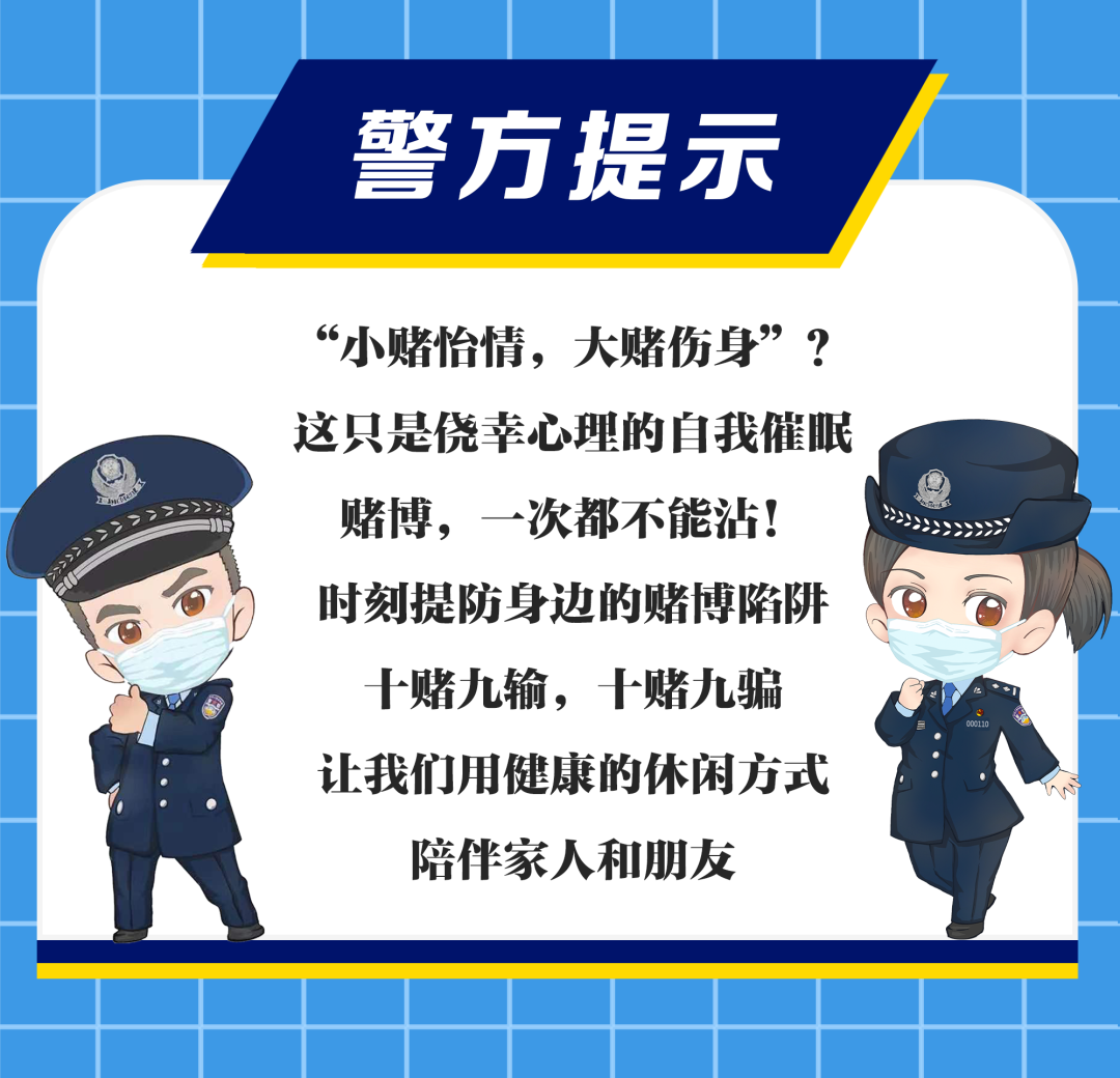 赌博“十赌九输”,因沉迷赌博而将多年辛苦打拼积攒的财产付诸东流的例子比比皆是,倾家荡产甚至家破人亡的反例屡见不鲜,教训十分惨痛。警方提醒,组织、参与赌博和为赌博提供场地、资金、工具等条件都是违法犯罪,公安机关将依法严厉打击查处。