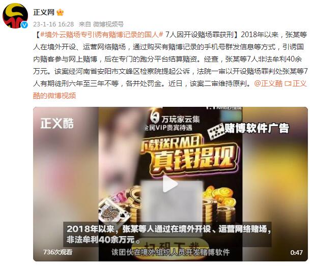 2018年以来,张某等人在境外开设、运营网络赌场,通过购买有赌博记录的手机号群发信息等方式,引诱国内赌客参与网上赌博,后在专门的跑分平台结算赌资。经查,张某等7人非法牟利40余万元。该案经河南省安阳市文峰区检察院提起公诉,法院一审以开设赌场罪判处张某等7人有期徒刑六年至三年不等,各并处罚金。近日,该案二审维持原判。