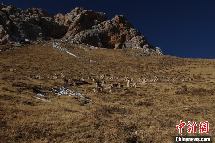 日前,摄影师在杂多县瓦里神山拍摄到在雪中悠然自得的国家二级保护动物——岩羊。