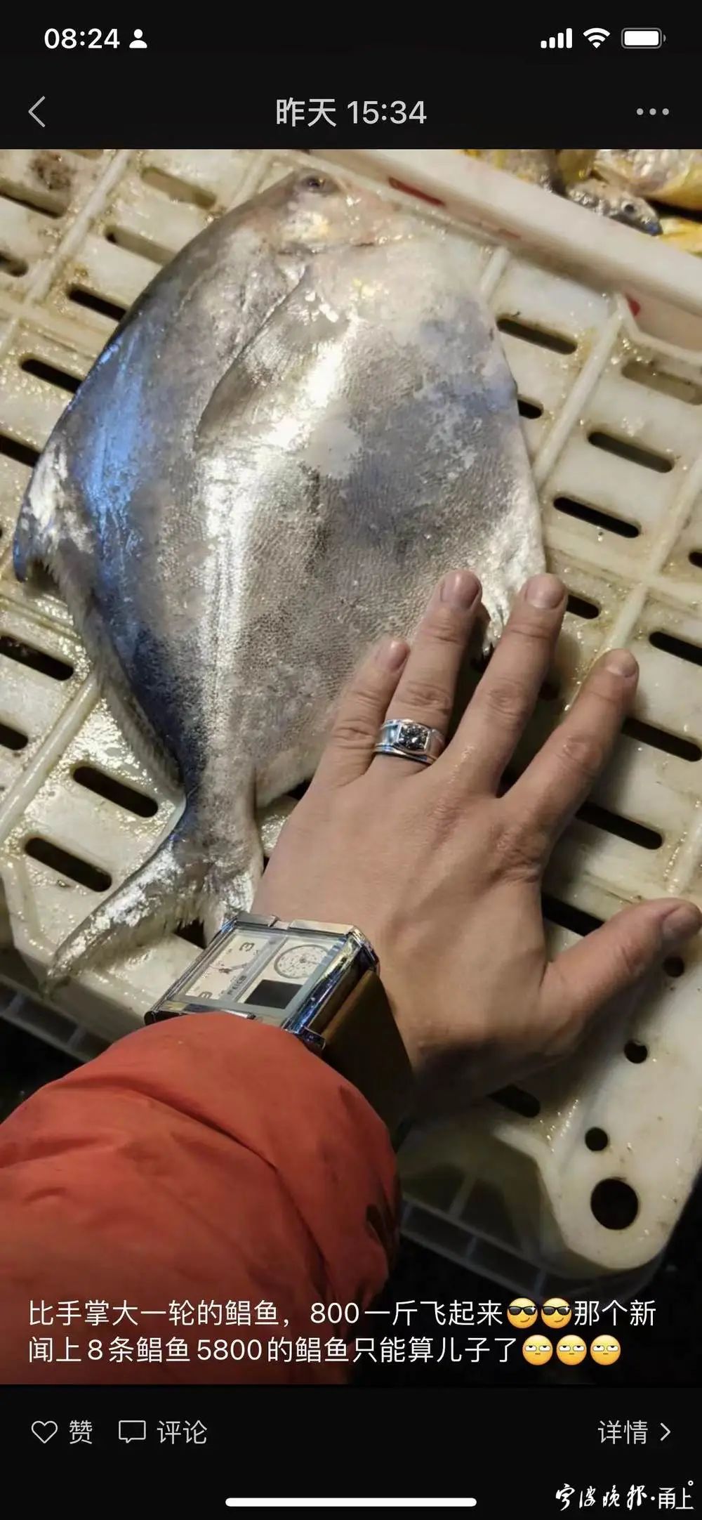 宁波海鲜商贩晒出的鲳鱼信息