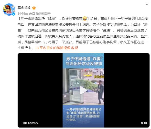 近日,重庆万州区一男子接到河北公安电话,称其因涉嫌违法犯罪被公安机关网上追逃。男子怀疑接到诈骗电话,为自证“清白”,他来到万州区公安局周家坝派出所要求民警给个“说法”。民警调查后发现男子确因诈骗被追逃,因被害人系河北人,遂由河北警方立案侦查并通知其投案自首。查实后,民警果断出击,将男子一举抓获。目前男子已被警方刑事拘留,移交工作正在进一步进行中。