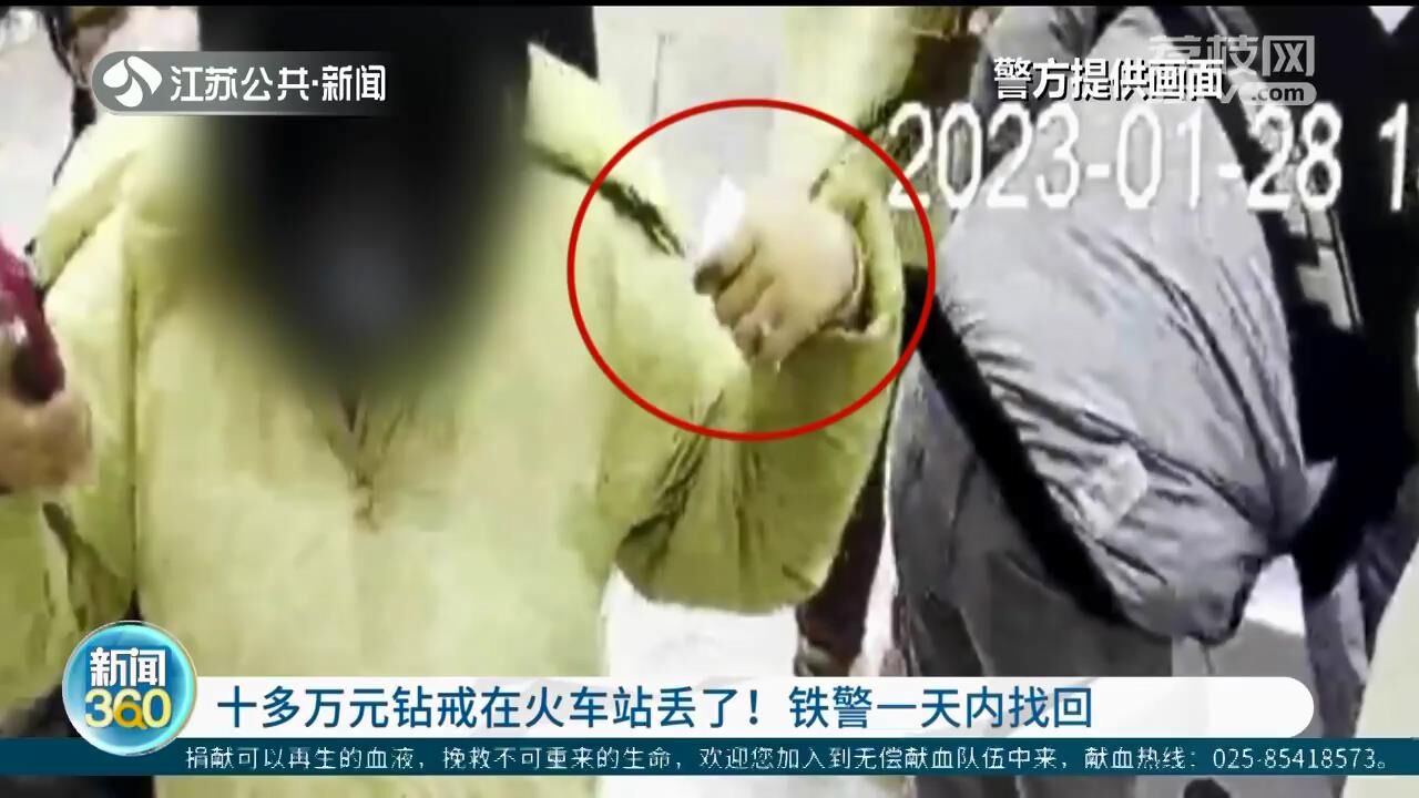 1月28日晚上,旅客王女士向铁路部门求助。自己坐上前往上海的高铁后发现手上价值十几万元的钻戒不见了,应该是掉在了扬州东站候车室。当天,扬州东站的客流量约2.5万人次,车站派出所民警和工作人员立即展开寻找。