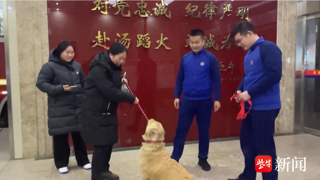 扬子晚报网2月1日讯(通讯员 苏欣 施如君 记者 陈勇)1月30日上午10时许,一只金毛犬独自“溜达”进江苏省连云港市连云区消防救援大队营区,正在站岗的两名岗哨发现后,立即出来查看,但并未发现它的主人。为防止金毛发生意外伤害,消防员决定暂时将其收养,并对外发布招领启事。1月31日晚上,金毛犬的主人得知消息后,来到消防队将其带回。