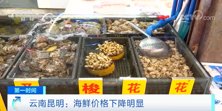 近日,记者走访了云南昆明部分市场发现,不少海鲜的价格都降了下来,有的品类甚至便宜了一半。