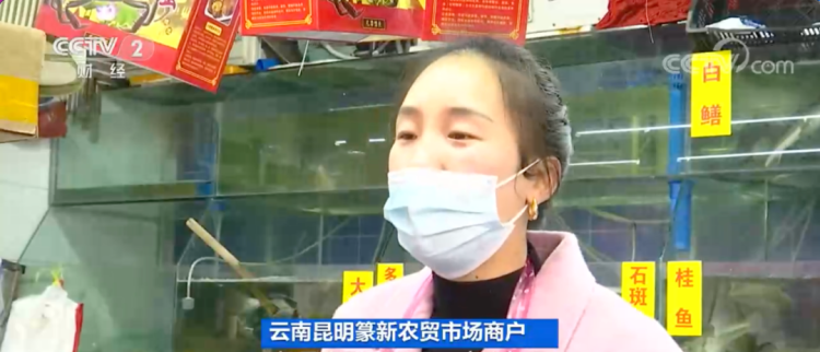 云南昆明篆新农贸市场商户: 过年的时候,虾卖到180元一公斤,现在100元一公斤;鳜鱼过节的时候150元一公斤,现在90元一公斤。