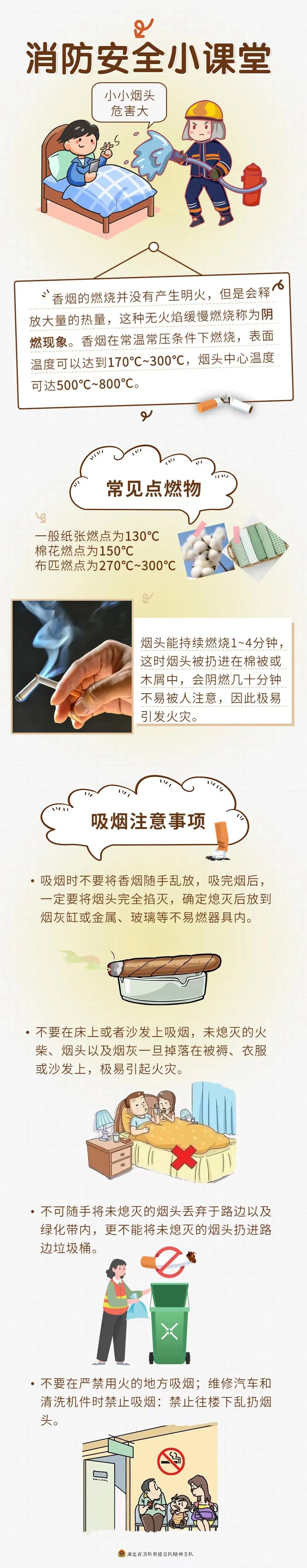 2023年1月5日,上海崇明,一八旬老人卧床吸烟时,未燃尽的烟蒂引燃被褥 ,老人扑救一次,不料2小时后火势复燃,最终引发大火,老人不幸身亡。
