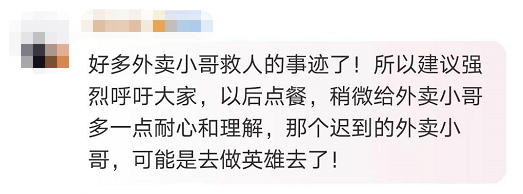 网友纷纷为外卖小哥点赞