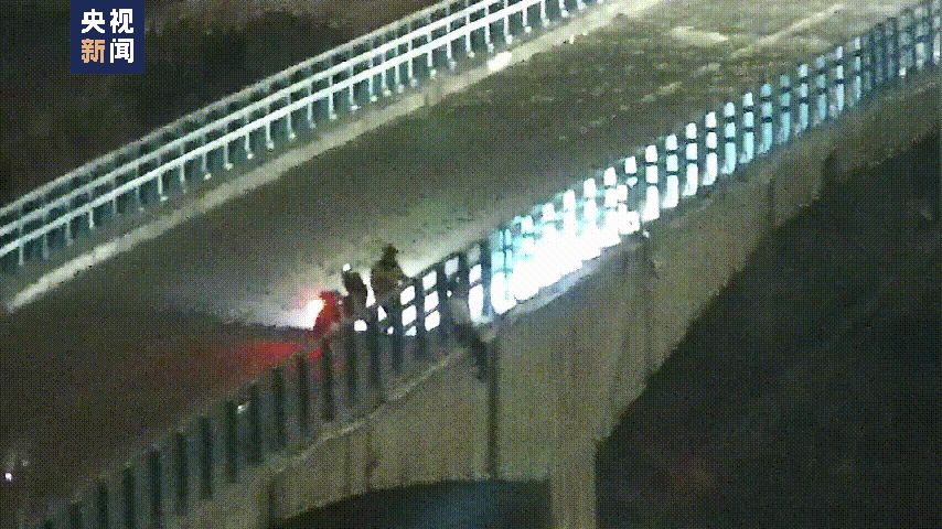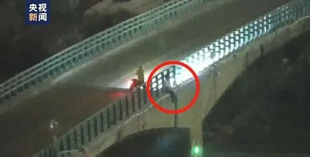 发现一男子坐在大桥栏杆外