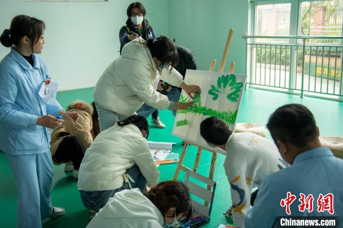 画作完成之后,护师王蕴璇开始引导患者讲述自己的故事(对外界绝对保密),鼓励大家表达自我。记者注意到,在治疗中,心理治疗师会特别注意每一位患者的发言,从发言中发现患者感兴趣的话题,找到沟通的“突破口”,从而与患者逐步建立起更强大的信任关系,帮助后续的心理治疗。