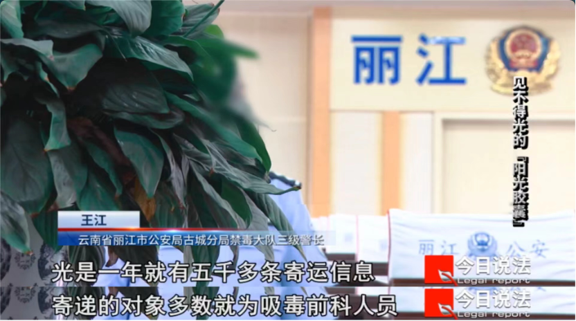 通过梳理物流信息,办案人员查明,出现在丽江的“阳光胶囊”都来自云南省迪庆州香格里拉市的杨红星。杨红星先将药寄到云南昆明,由其妻子陈冬梅接收后再转交给快递员陈新兴,之后再由陈新兴匿名寄递给丽江的吸毒人员。