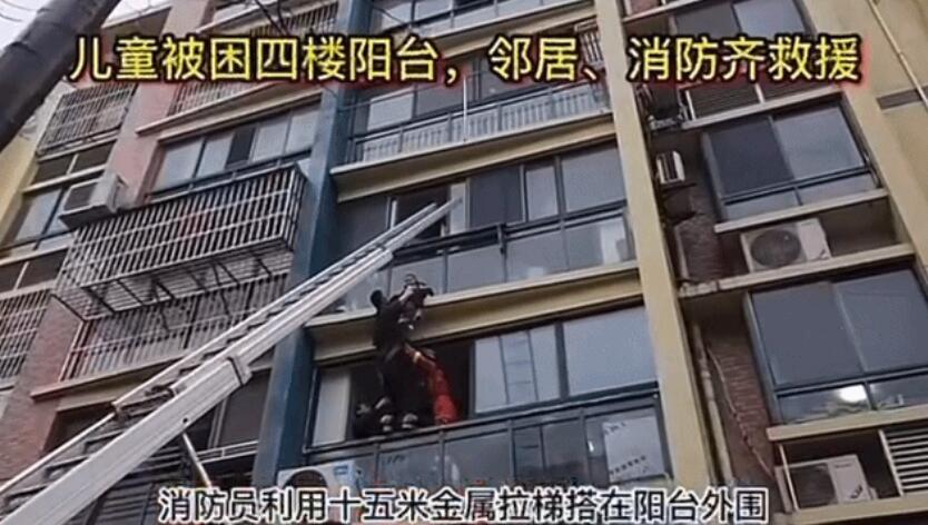 1月13日,江苏苏州,一男孩为找父母翻出了窗外,被困在4楼阳台边缘处。邻居发现情况后立刻拨打119,为防止男孩掉落,热心邻居合力托举住男孩,消防员到场后,成功救下男孩,让孩子安全落地。